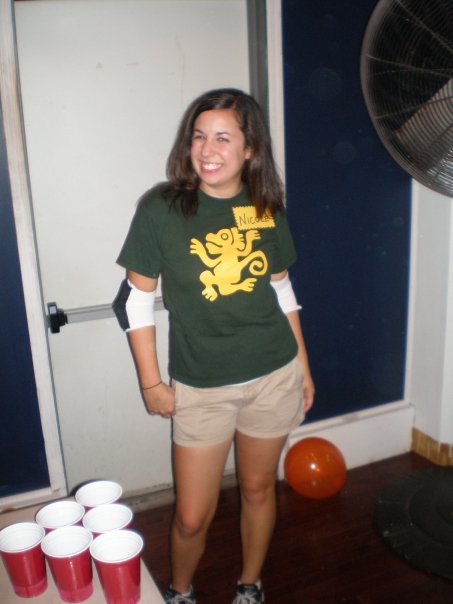 DH and I were the Green Monkeys from Legends of the Hidden Temple (a Nickolodeon game show that was on when we were kids... ) We made Pendants of Life and everything