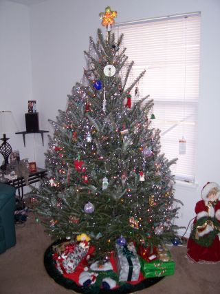 Ok,,,,,here is our tree without decorations...we will be decorating tonight so I will post the finished product~ Dont mind the un-centerd star,,that will be fixed Image Attachment(s):