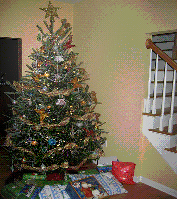 My tree is seriously SOO ghetto. I have a gate around it, my DH insisted on having gold garland on it (he says no tree is complete without garland) and it's an inexpensive fake tree.