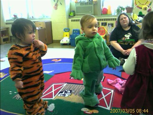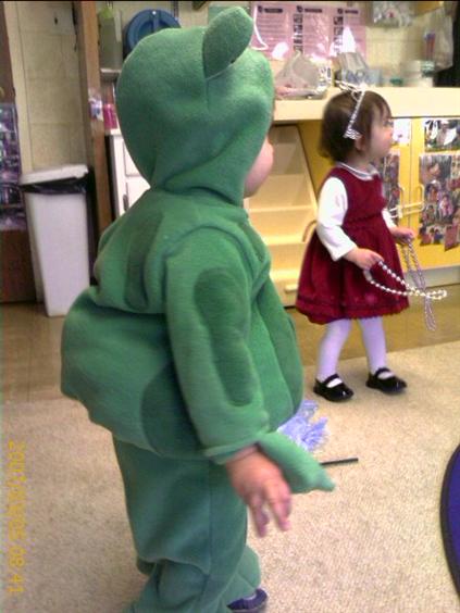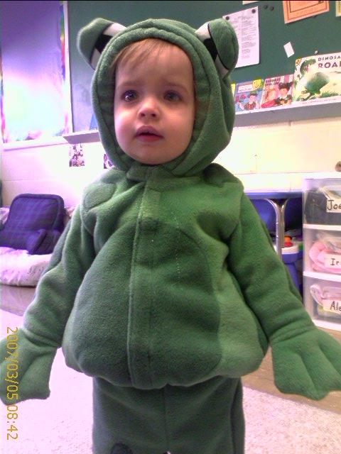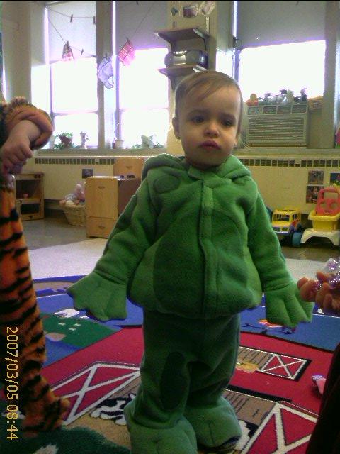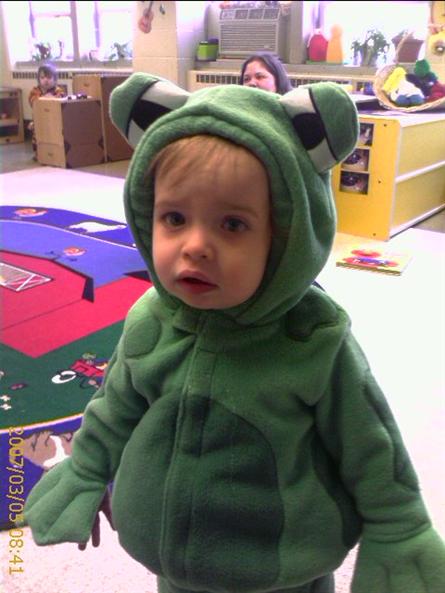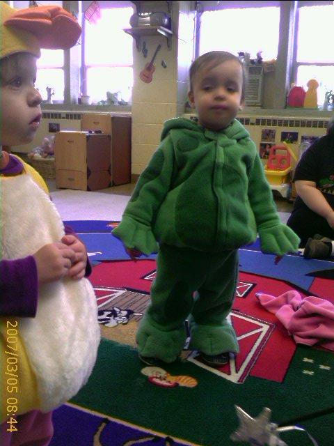 Alex's daycare had a purim party today, and asked all the kids to dress in costume. Here are some pics Dh took on his camera phone this morning!