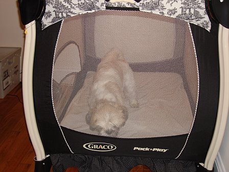 Putting our pack and play to go use! w/ pics