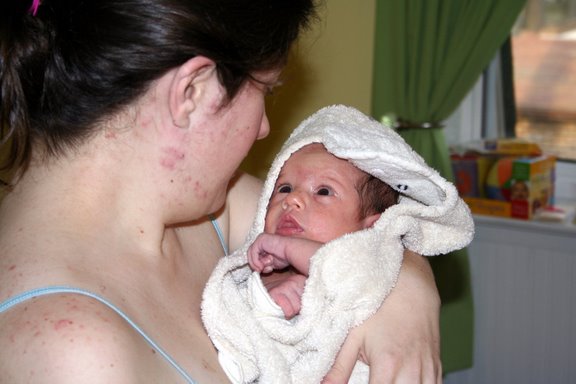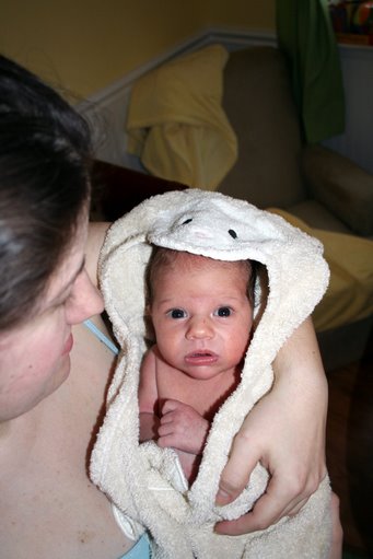 And since her stump FINALLY fell off earlier in the week, we gave her her first bath yesterday.