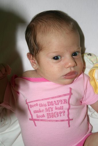Beautiful! I love her onesie "does this diaper make my butt look big". LOL so cute.