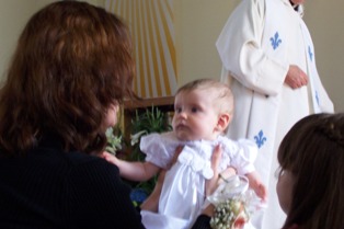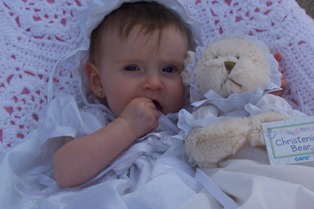 What a gorgeous day firstoff! We got so lucky! Samantha started off the dsy on the way to the church screaming, and I mean SCREAMING , which she never does, so dh and I thought we were totally in for it....but I quick fed her a little in the car, and then she was fine....she wound up going nicely to everyone at the church and restaurant! :)