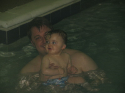 He was like a little fish, kicking and splashing away. The teacher called him the next Michael Phelps! lol