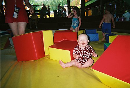 awww... looks like great fun. What's he sitting on in the pic with the red and yellow things?