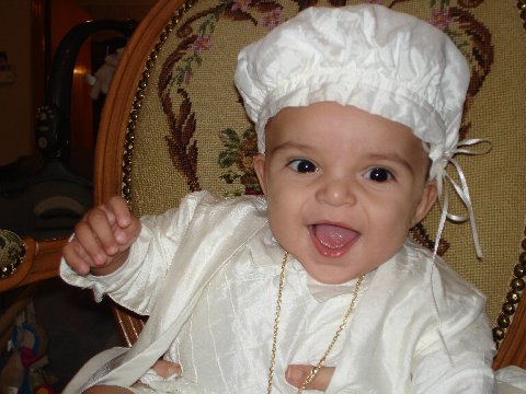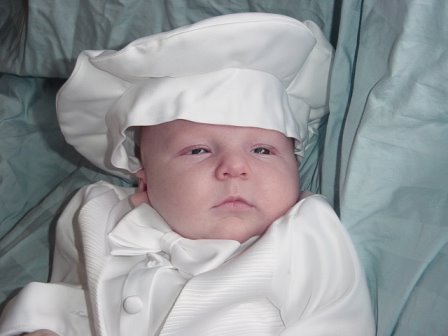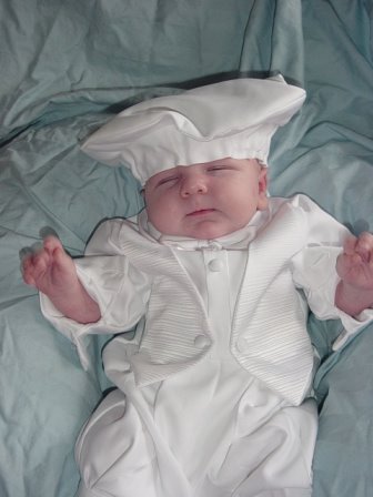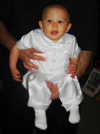 It feels so long ago. Ryan was only 6 weeks. My Mom had to pin his shorts (they ended up looking like pants) and pin his hat. I love it. His Godparents picked it out for him. Image Attachment(s):