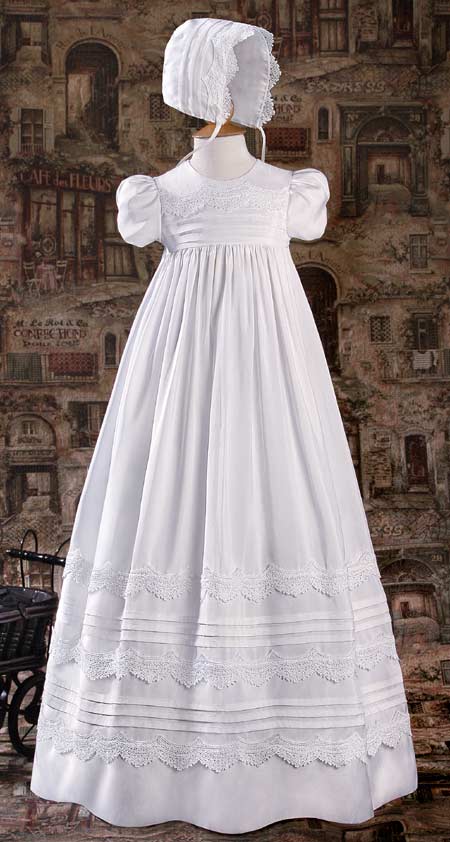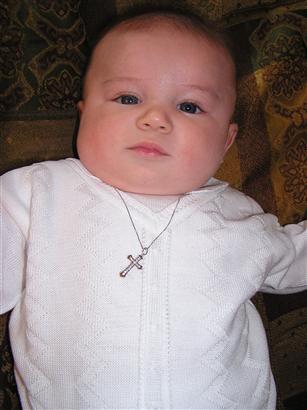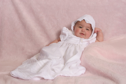 I won't bother showing your ours. It's a polyester, yellowing UGLY, UGLY baptism gown that DH & his sister were baptised in. Yes, thank you MIL for going through the effort of finding it in your attic. I researched Belgium cotton ones for my health.