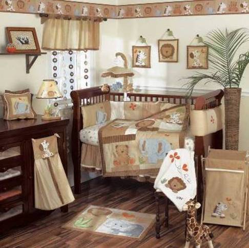 We're not finding out and even of we were I am not into pastels so I wanted something cute but with neutral, warm colors so we chose the bedding below. I LOVE it!!!