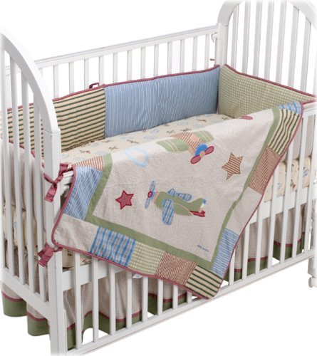 Kim, Like Diane's friend I got it at BRU. Its made by Nautica Kids and called "william." The only downside to this set is that there is not a lot of matching stuff to buy along with it (theres the sheets, blankets, windo valence, some pillows, border, mobile and lamp share [notice just shade, not the actual lamp ) I love the sets that have matching bags and pails and such but we wanted the simplicity of this set.