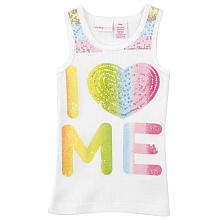 Starting shopping for summer camp clothes. I got lime green cotton bootie shorts to go with the "I LOVE ME" tank. Picture not online.