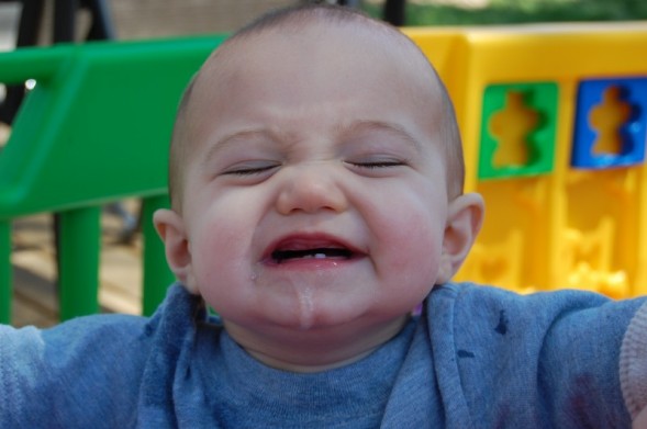 not his funny face, but I think he looks funny giving me a dirty look because I put a 3-6mth old onsie on him. Image Attachment(s):