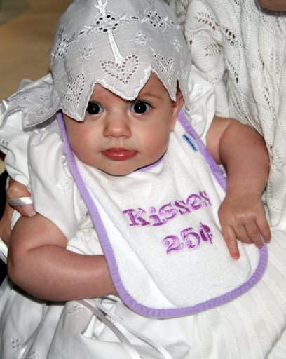 She looks so cute!! Paige's christening is sunday and now im thinking of using the bumbo for pics.