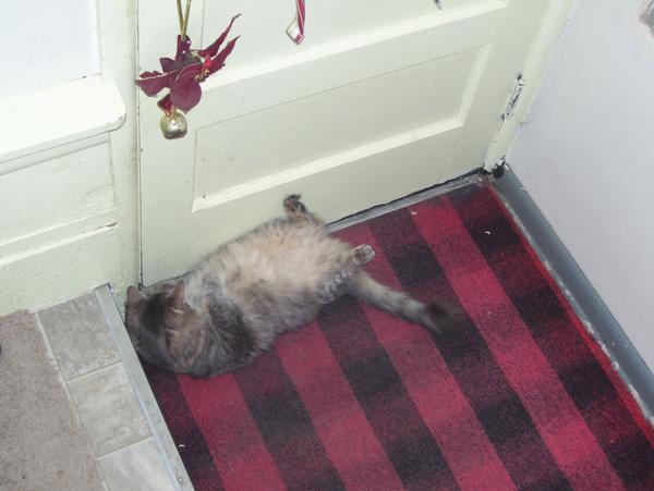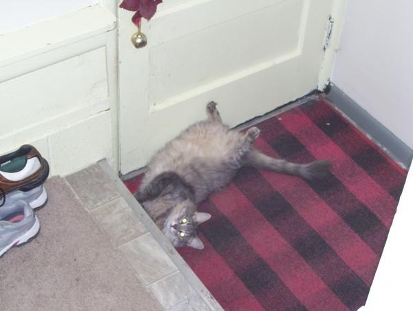 She's a crazy kitty. She loves to lay in windows and lay by the back door waiting for Gus to come in. She has a HUGE thing for boxes of any sort....she loves to crawl inside of them