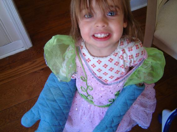 I am loving the oven mits with the princess costume I didn't think princesses cooked for themselves
