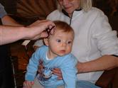 He was 9 months and he was very good. I'm more nervous about this time because he doesn't seem as still. Here are some pics - He is sitting on my Mom :)