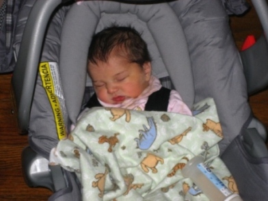 hannah- the other day---and hannah, like 8 weeks (bc i am honest- she has gotten so much better looking!!! ol- and the first 8 weeks- phew- she either looked not good or she had her eyes closed bc she was sleeping- this was the first pic i found...)