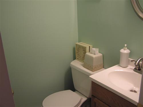 But I think I want to paint a bathroom a green color too (I have a brown, beige and green shower curtain with a palm tree motif).