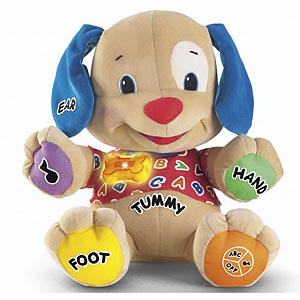 Its funny you posted this, Julia has this puppy also, and I'm like totally afraid of it. It will just start talking out of no where, and scare the cr@p out of me--lol It reminds me of Chucky!