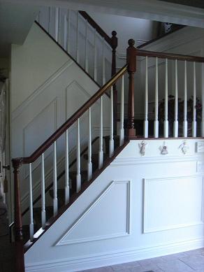 We just installed new stairs and I am having a hard time deciding how to stain them. My floor is all wood and is a light color stain with a mahagony stain trim just around the border. I just installed crown molding and base molding and molding trim around all doors and windows and stained them a very dark brown color.......How would you stain the steps? Do them all light with the dark brown molding or stain the entire stairs and banister dark to match all the molding?
