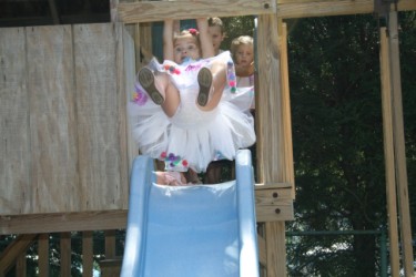 I love the first one with the balloons AND the one where she looks like she's about to swing off the slide