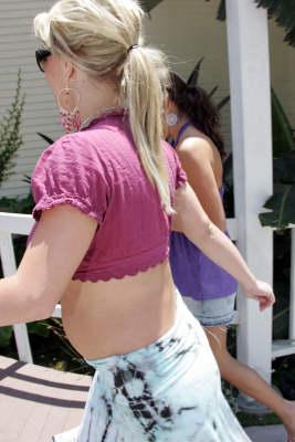 Sorry - but she is a little TOO exposed...Im all for the cute belly sticking out (have done it myself) but I think it is way more beautiful a la kate Hudson...on brit - its just trashy!
