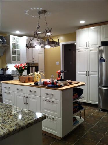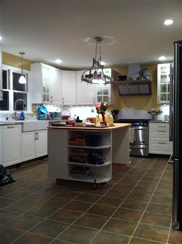 Ok, so all that is left is the backsplash, molding, and install the butcher block countertop on the island... I'm so proud of DH for designing and constructing this all by himself, all for less than $11k! Image Attachment(s):
