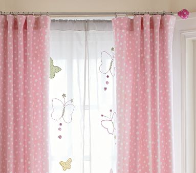 They are Pottery Barn Kids - pink gingham panels and the rods with pink gingham finials and holdbacks.