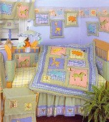 Complete with quilt, throw pillow, 3 window valances, lamp, bed skirt, sheets, blankets, wall hangings, mobile, crib bumpers... EXCELLENT condition.