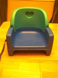 Fisher Price booster seat with removeable back. Attaches to the chair. Doesn't use lap strap so it's for a child who needs a little extra boost without the "baby" look of the other type