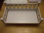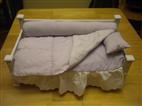 Doll day bed in white wood, very clean and excellent condition. Comes with all the lavender/white bedding you see here-padded mattress, pillow, dust ruffle, blanket. Fits 18 inch doll (or stuffed animals if your child is like my daughter)