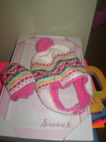 Winter 2008 Gap kids ivory and pink argyle hat with matching mittens. Size 12-18 months GUC $8