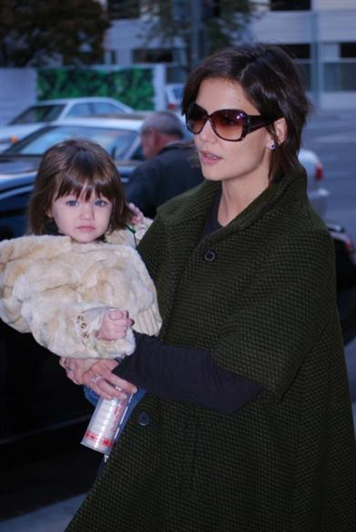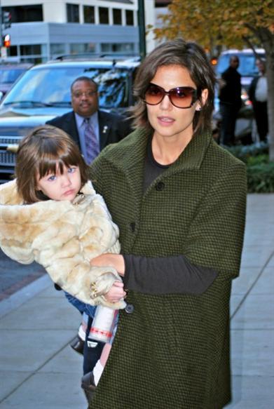 Suri is so cute. I hope thats not a real fur coat on her though. Katie's whole Jackie O thing bugs me- get your own style.