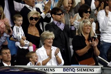 I think that is David's Mum & Sister in the row in front with one of the other Beckham kids, Romeo maybe