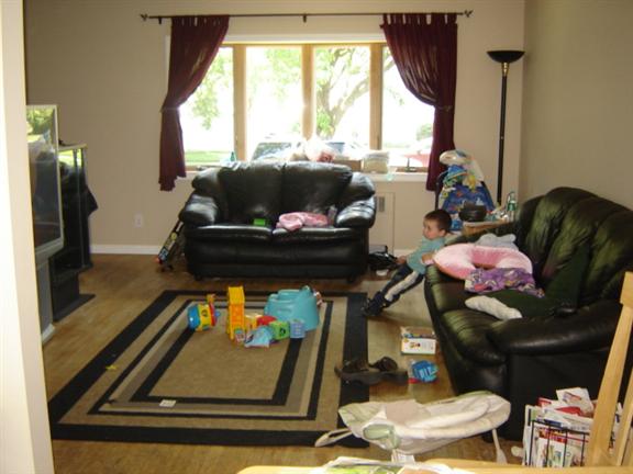 so DDs room is full and so is the closet I am really looking for a place to keep her toys in the living room instead of on the floor. We have a very small living room.(excuse the mess I am babysitting my nephew and he was playing in here ) I am picking up 2 cheap end tables for now so I can put my lamps on them I was thinking of getting a chest or an ottoman but I dont want to spend alot$$ but I am looking for any suggestions really TIA