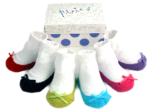 I just bought some for Ellie. They're so adorable. I loooove them. They're socks that look like shoes! I'll try to post some pics of them. They're pricey, but you get six pairs in one order so it's not terrible.