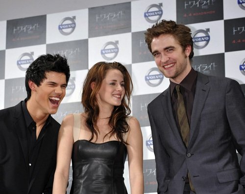 "PEOPLE.com" Not letting a little stormy weather dampen their spirits, costars Robert Pattinson, Kristen Stewart and Taylor Lautner take cover as they arrive on the red carpet for the Tokyo premiere of Twilight Friday in Japan. The trio will return to the set in March to film the sequel, New Moon.
