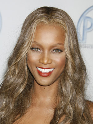Tyra is looking so horrible!!! I hate the hair and the color of the hair.