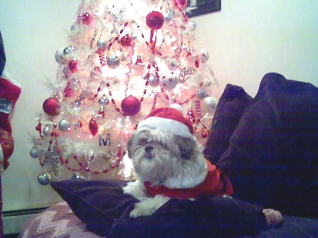 I had to share these few pics of my dog by the tree, Took em with my cell..