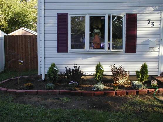 hey scott!!! congratulations and welcome to levittown!!! I will def post pictures tommorow!! we almost have the exact size to plant - in the front of the house... we pulled out everything all the bushes they were there for like 30 years they said.. they were pretty sad looking way overgrown... here's a before & after pic with the bushes in and no bushes i'll post the new pics tommorow!!