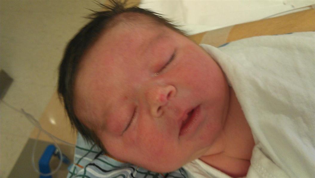 Congratulations! He's beautiful! I can't get over that head of hair and that long body! You're superwoman!