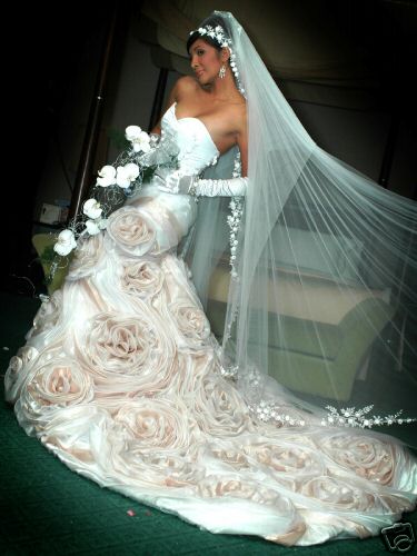 I actually kind of like it as well...I wouldn't have the bolas to wear it but I like it. What I don't like is how this bride accessorized it...its too much...I think a simple slicked back hairdo and a simple veil would do it.
