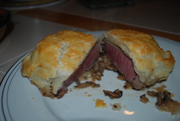 Sunday: Did a trial run on Beef Wellington. AMAZING. I did a gruyere/fontina potato gratin and a baby spinach salad with cranberries, pecans, gorgonzola, and raspberry vinaigrette. (Pics below)