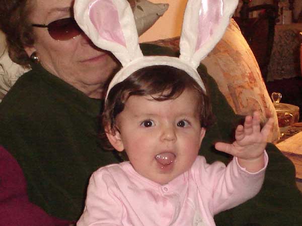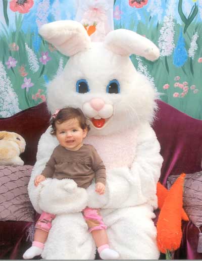 Your easter bunny is cute too..ours was scary! Love her with the bunny ears on!