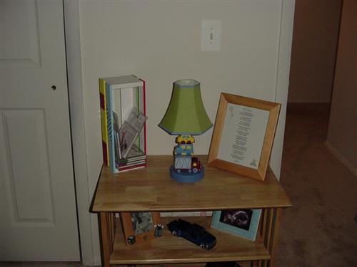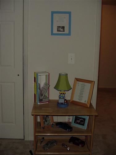 If you look at the bottom of the shelf holding the lamp..there are all DH toy trucks and things...