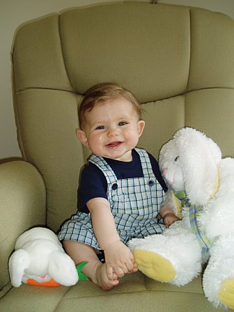I am so bad, I didn't get Andrew an Easter outfit this year. I put a pair of khakis on him with a collared yellow Polo shirt and that was it! I'll post a pic whenn I upload them!
