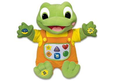 I agree. My mom got a frog that's similar to the one pictured below, but the one I have has the whole alphabet on his belly. You can choose what the baby learns about by pressing either letters or colors and then you press on the letters and it sings a song about each one. It's really cute and even though it's a bit advanced for Christopher, he still loves the bright colors and hearing the songs. Image Attachment(s):