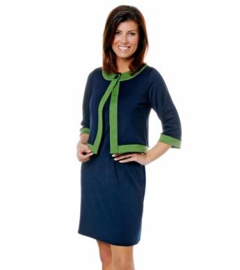 I like the navy/green. I have navy patent pumps that I'd wear with it, but I think you could go with a nude shoe or even a green shoe too.