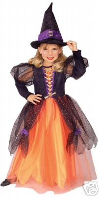 The orange one looks more like a princess dress than a witch costume... if she wants to be a witch for Halloween, I'd go with the green costume.