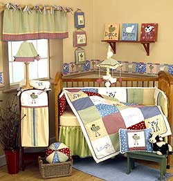 That's Lily's bedding!!! I love it. We got it because it could go either way....and I think it does. Her room is clearly a girl's room, and she loves pointing out the letters and animals on the bedding (so it's a great teaching tool too! )